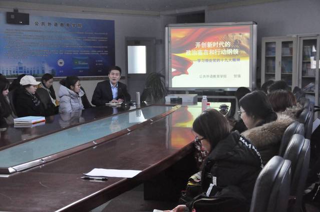 为深入贯彻学习宣传党的十九大精神,12月22日下午,公共外语教育学院在外语楼六楼会议室举办题为“开创新时代的政治宣言和行动纲领”的专题学习讲座,主讲人为学院党委书记贺强,公共外语教育学院全体研究生参加了本次讲座。