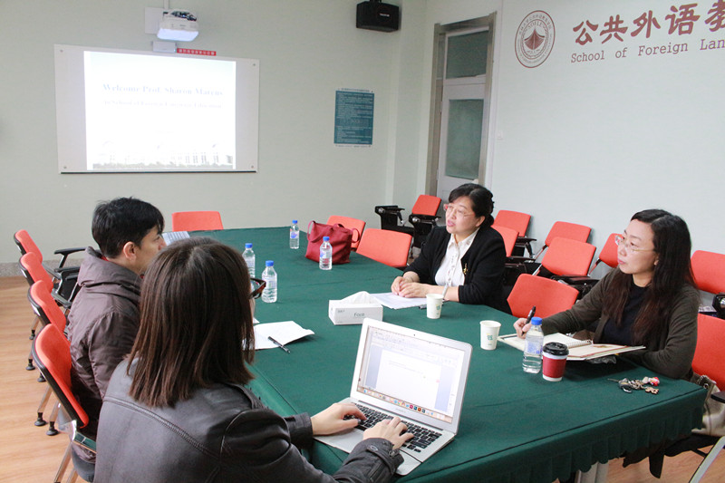 10月16日上午,美国哥伦比亚大学文理学院院长Sharon Marcus教授来访公共外语教育学院,同院长战菊教授举行了会谈,并和学院教师进行了座谈。
