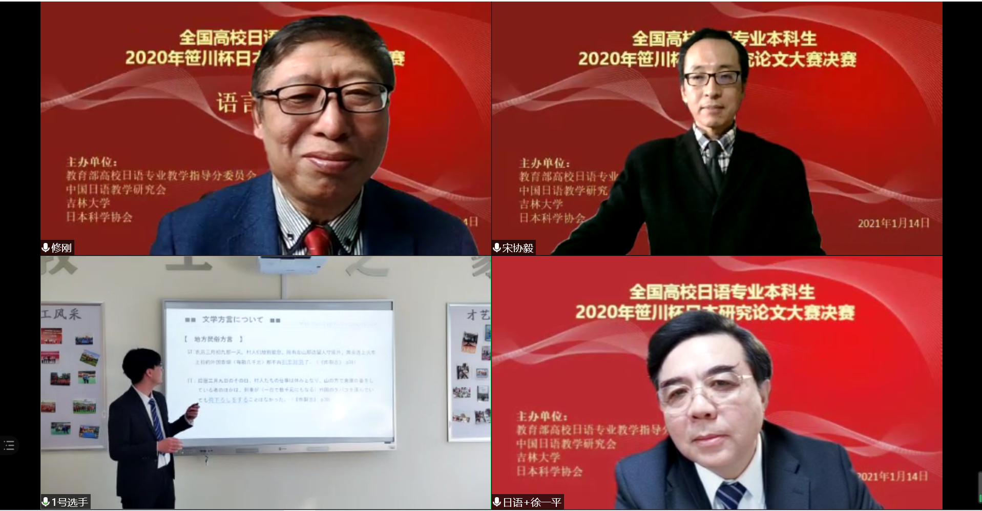 由教育部高等学校外国语言文学类专业教学指导委员会日语分委员会、中国日语教学研究会、242net官网、日本科学协会联合主办,242net官网外国语学院承办的“2020年笹川杯日本研究论文大赛”于2021年1月14日以在线方式举行决赛,并于2月24日在线隆重举行颁奖仪式。