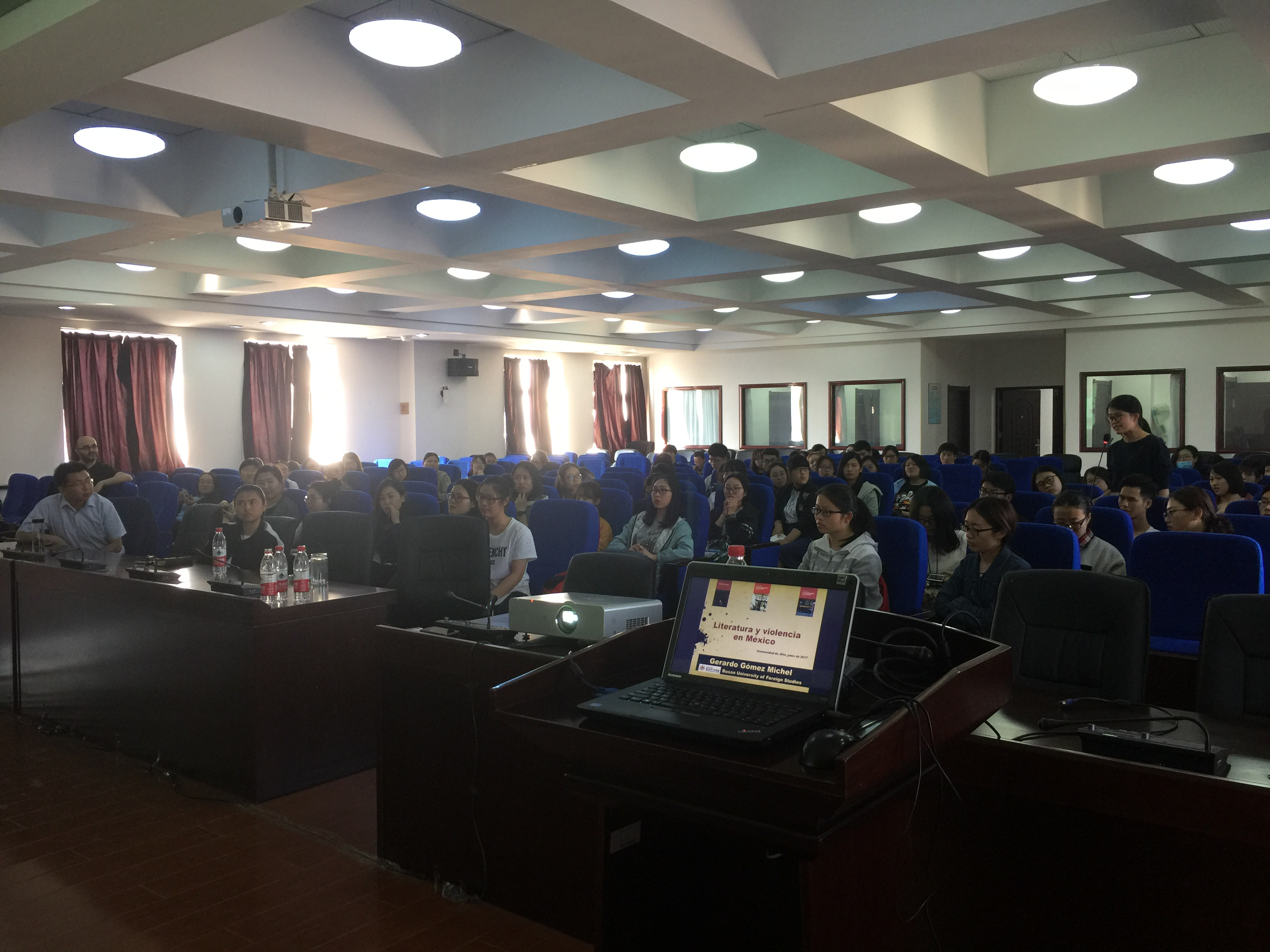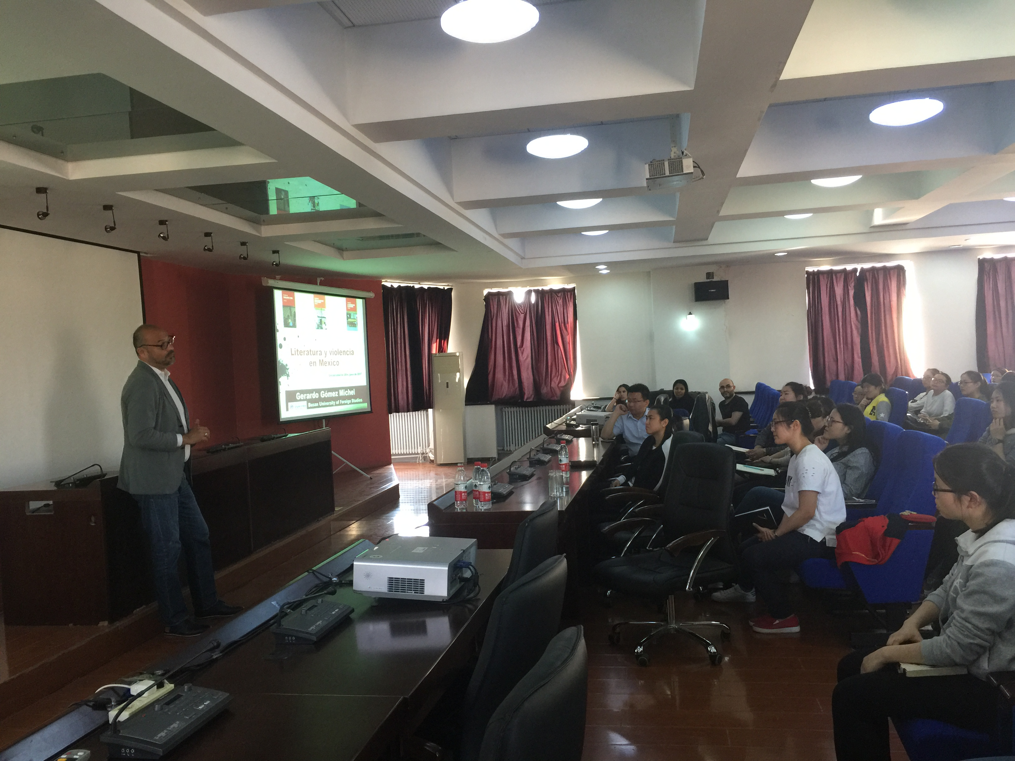 应外国语学院邀请,2017年6月1日-4日韩国釜山外国语大学伊比利亚美洲研究中心的墨西哥学者Gerardo Gómez Michel教授来我校交流访问。在访期间,Gerardo Gómez Michel与外国语学院西班牙语系师生座谈,并为西语系师生开设了题为“墨西哥之文学与暴力”(Literatura y violencia en México)的讲座。