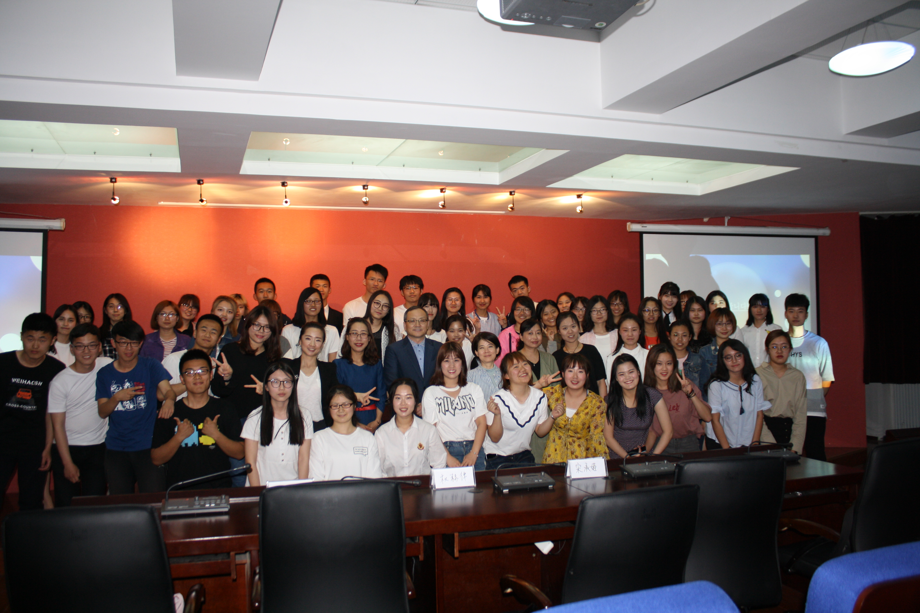 为丰富我系学生的课余文化生活,进一步提高学生的语言实践能力,5月26日下午5点30分,由外国语学院朝鲜语系主办的韩语配音大赛在外语楼500多功能报告厅隆重举行。本次大赛的评委由我系外教和老师担任,朝鲜语系一、二年级学生积极参加了此次比赛。