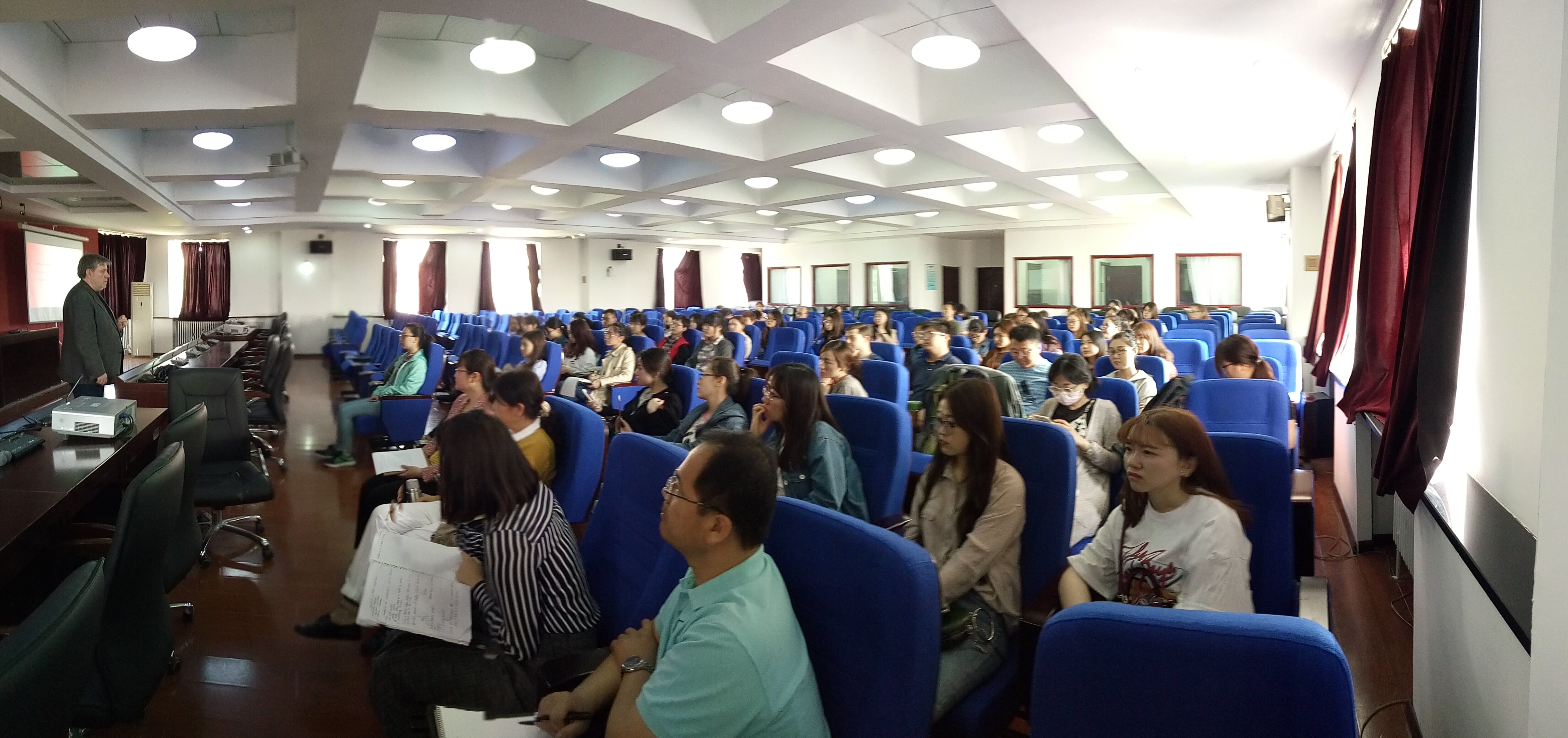 5月11日,由外语学院英语系承办的“翻译理论与实践系列讲座”(一)、(二)在中心校区外语楼500报告厅举行。Johnston教授以“贝尔法斯特视角下的翻译”和“笔口译人员职业素养”为题,为我院的翻译硕士研究生分享了他在翻译领域的教学与研究所得。
