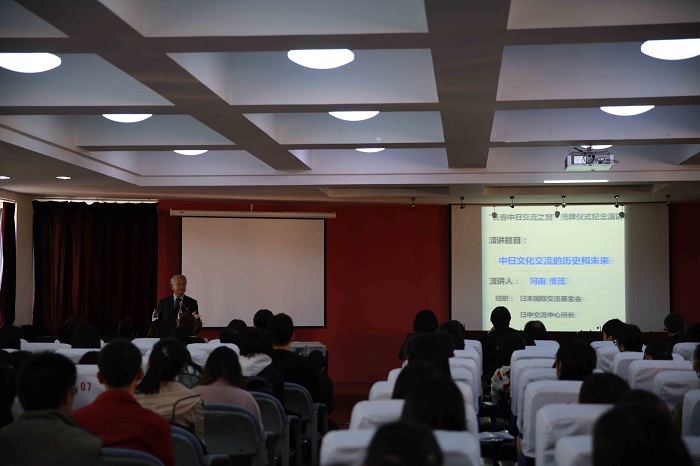 揭牌仪式结束后,阿南惟茂所长为我校师生做了题为“中日文化交流的历史和未来”的纪念讲演。我校国际合作与交流处、外国语学院及长春部分高校日语专业的教师和学生代表共同出席了上述活动。