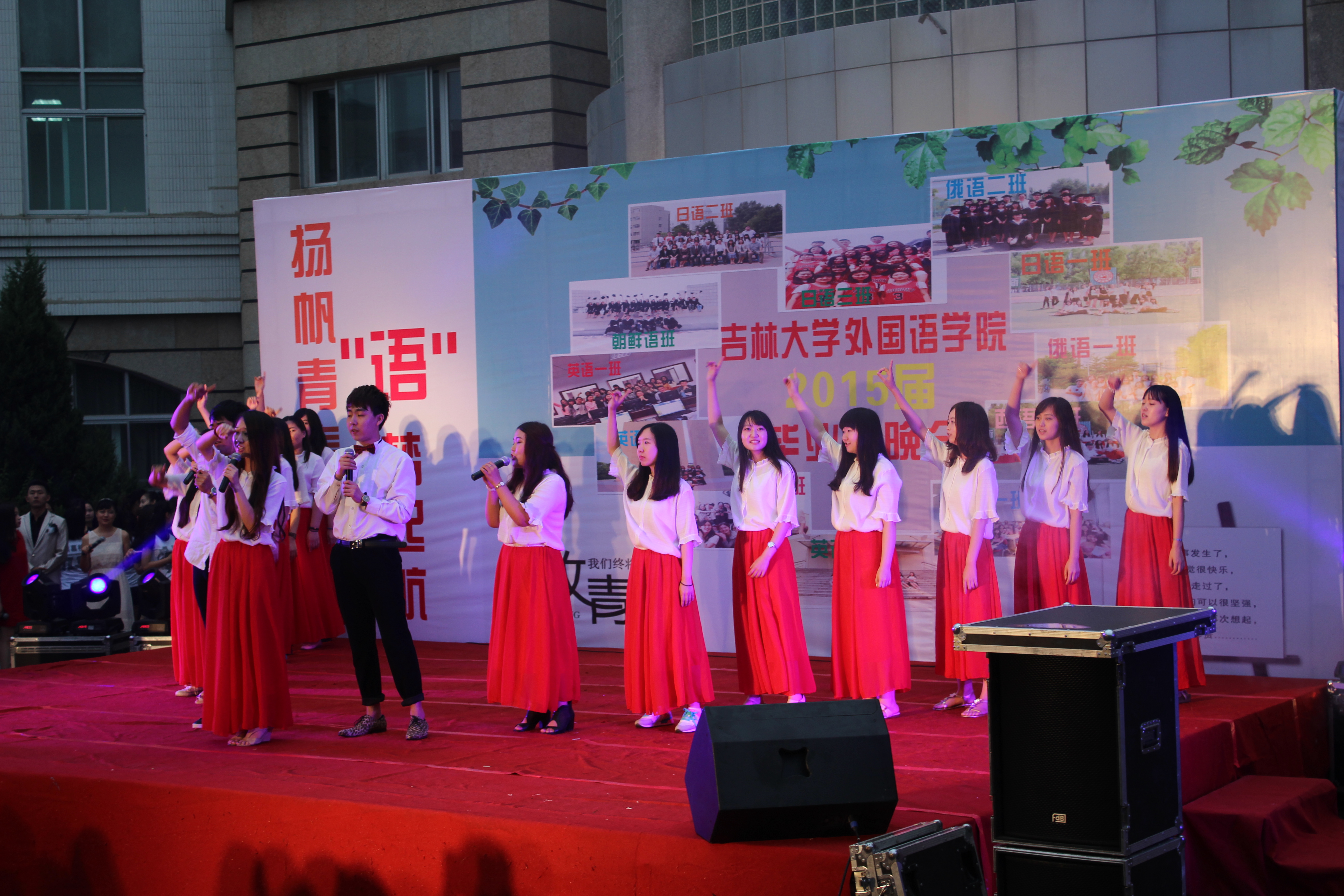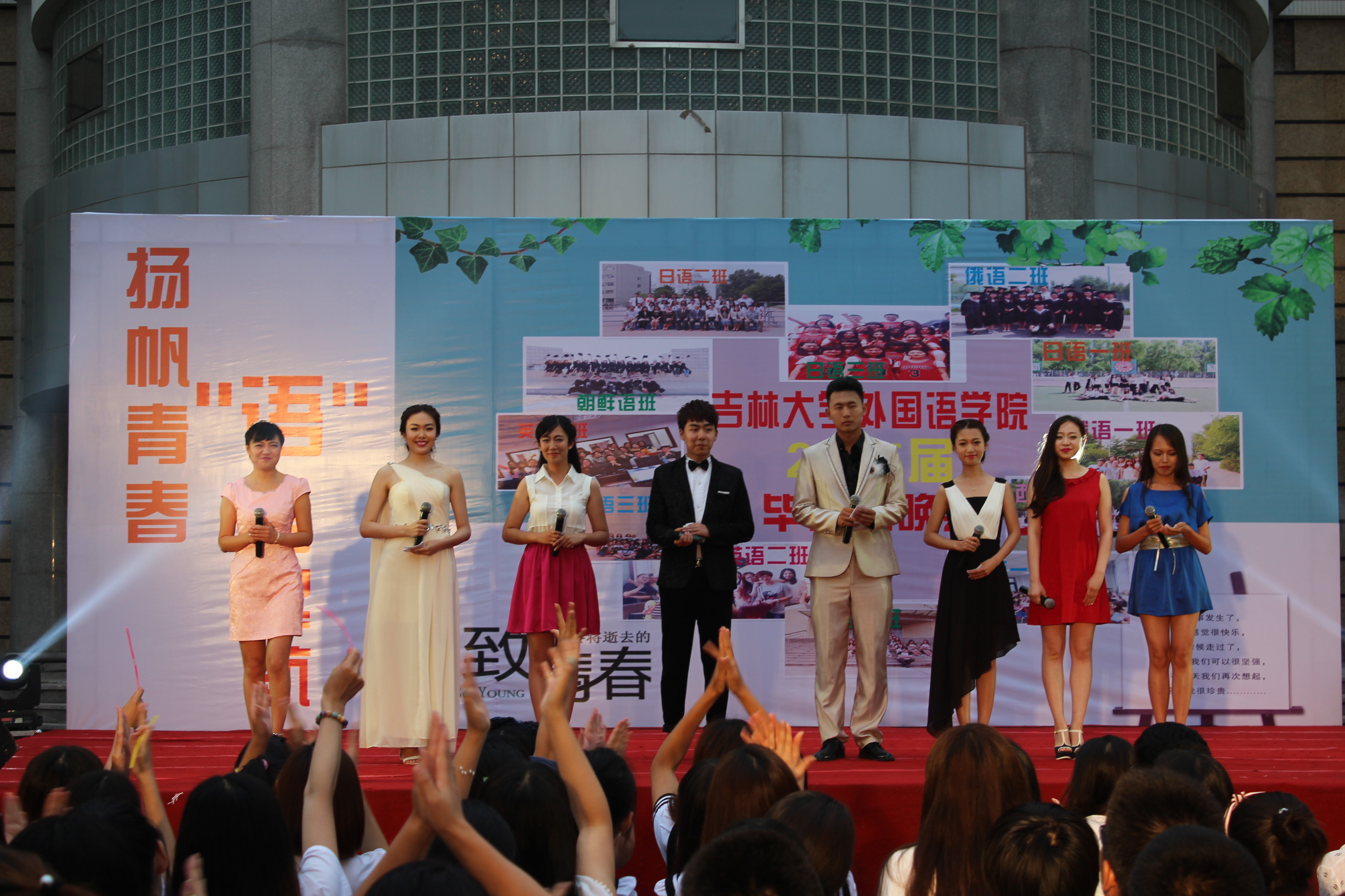 6月25日晚,外国语学院 “扬帆青春,语梦起航”2015届毕业生晚会在外语楼正门浓情上演。外国语学院院长周异夫教授,党委书记逄锦彩老师,副院长刘佐艳教授、张玫玫教授、权赫律教授、胡建军教授、王哲夫老师,党委副书记兼副院长白宇老师,以及各语系主任和教师、毕业生家长代表参加了本次晚会,与2015届毕业生同学们共同度过了一个愉快难忘的不眠之夜。