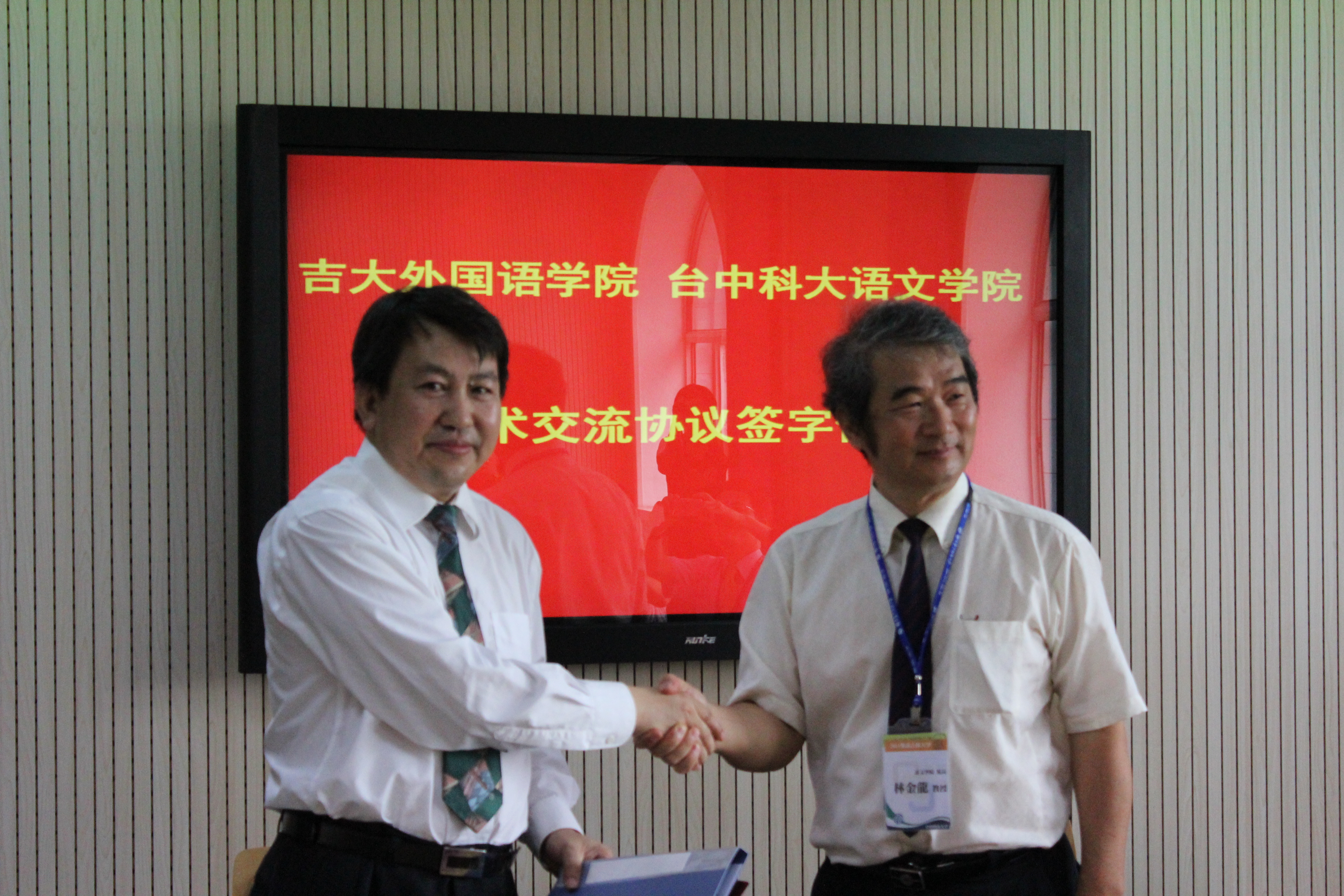 6月17日,台中科技大学语文学院院长林金龙教授等一行八人来我院访学,并与我院签订学术交流协议,缔结了友好合作关系。外国语学院党委书记逄锦彩、学院领导班子,各系主任、副主任、部分学生代表参加了学术交流签订仪式,并出席了座谈会。双方就本科生和研究生人才培养、师资队伍建设、学术交流与合作等方面进行了深入的探讨,并达成了进一步探讨交流与合作内容,扩大交流合作空间的意向。