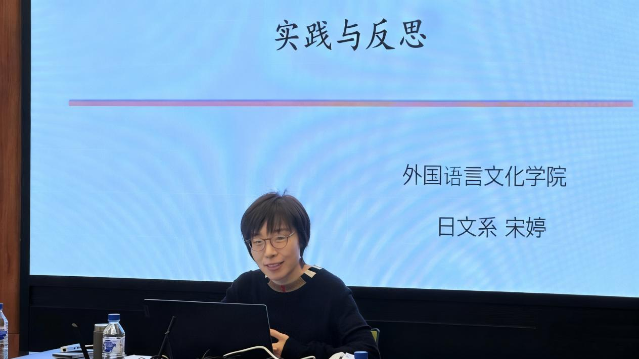 宋婷副教授以新时期人才培养需求为切入点,梳理了教育政策背景,强调教学设计需紧扣时代育人目标。从教学设计的定义与重要性展开,宋婷副教授加涅教学事件、BOPPPS 教学模型等理论,阐述如何设计贴合学生认知规律的教学活动,并通过自身参与的《日语精读》课程模式改革、“课程思政”示范项目等案例,分享教学改革中 “发现问题 — 数据分析 — 思路创新” 的实践经验,提出从 “模拟场景转向真实对话”“知识积累转向社会参与”“学科内思考转向交叉学科探索”的改革方向。宋婷副教授指出教学设计是运用系统方法,将学习与教学理论转化为教学目标、内容、策略及评价的完整过程,能有效保障学生学习的优质高效。