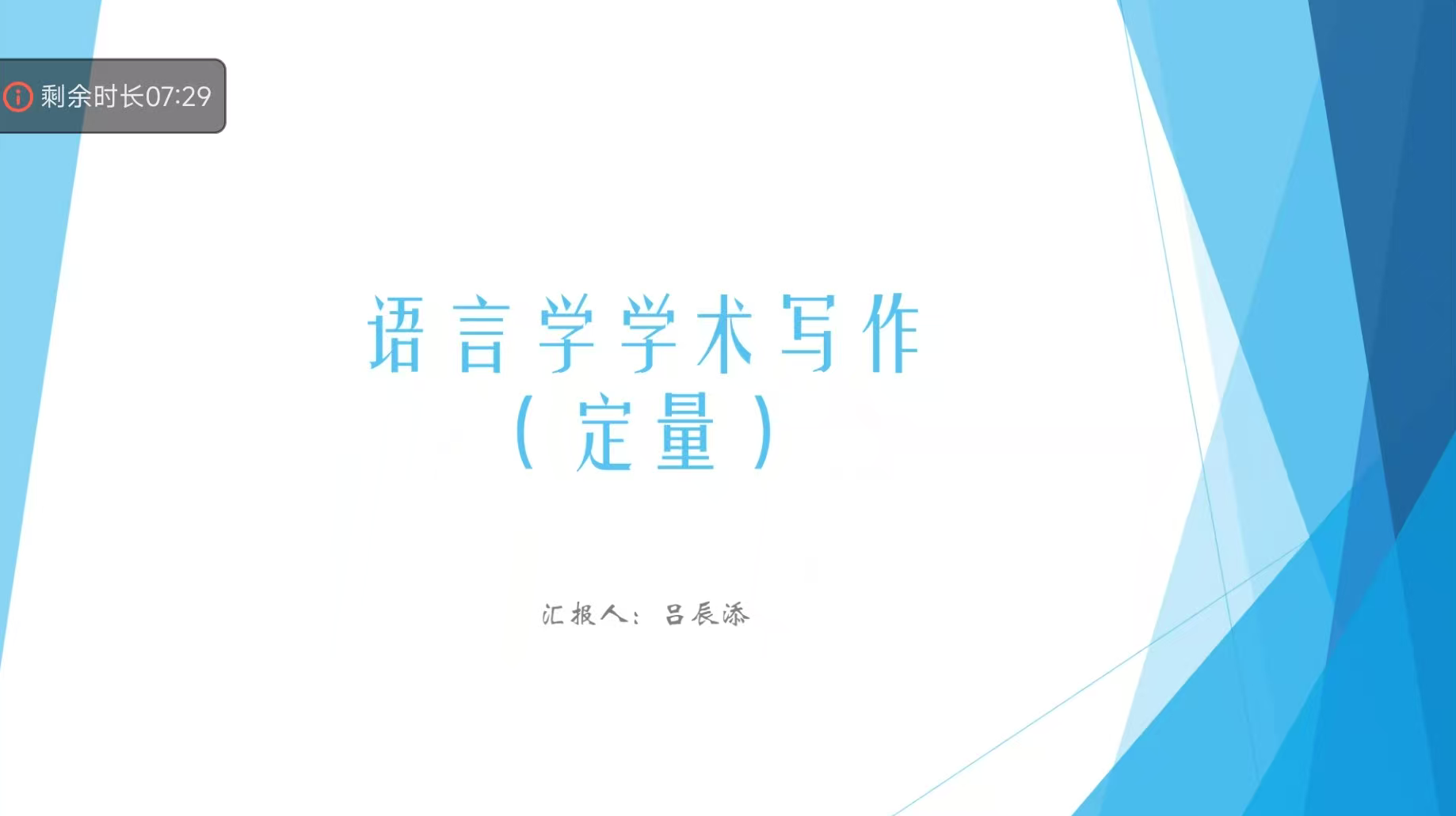 吕辰添以“语言学学术写作(定量)”为主题,结合自身在SSCI期刊发表论文经验,讲解来了学术论文写作与投稿要点。文献阅读与选题强调立足扎实理论背景、关注新概念等;研究方法提醒合理设计实验、注意量表和工具规范;最后结合投稿发表经历,指出国际期刊看重研究规范性、创新性与学术贡献,鼓励大家积累坚持、提高写作发表能力。